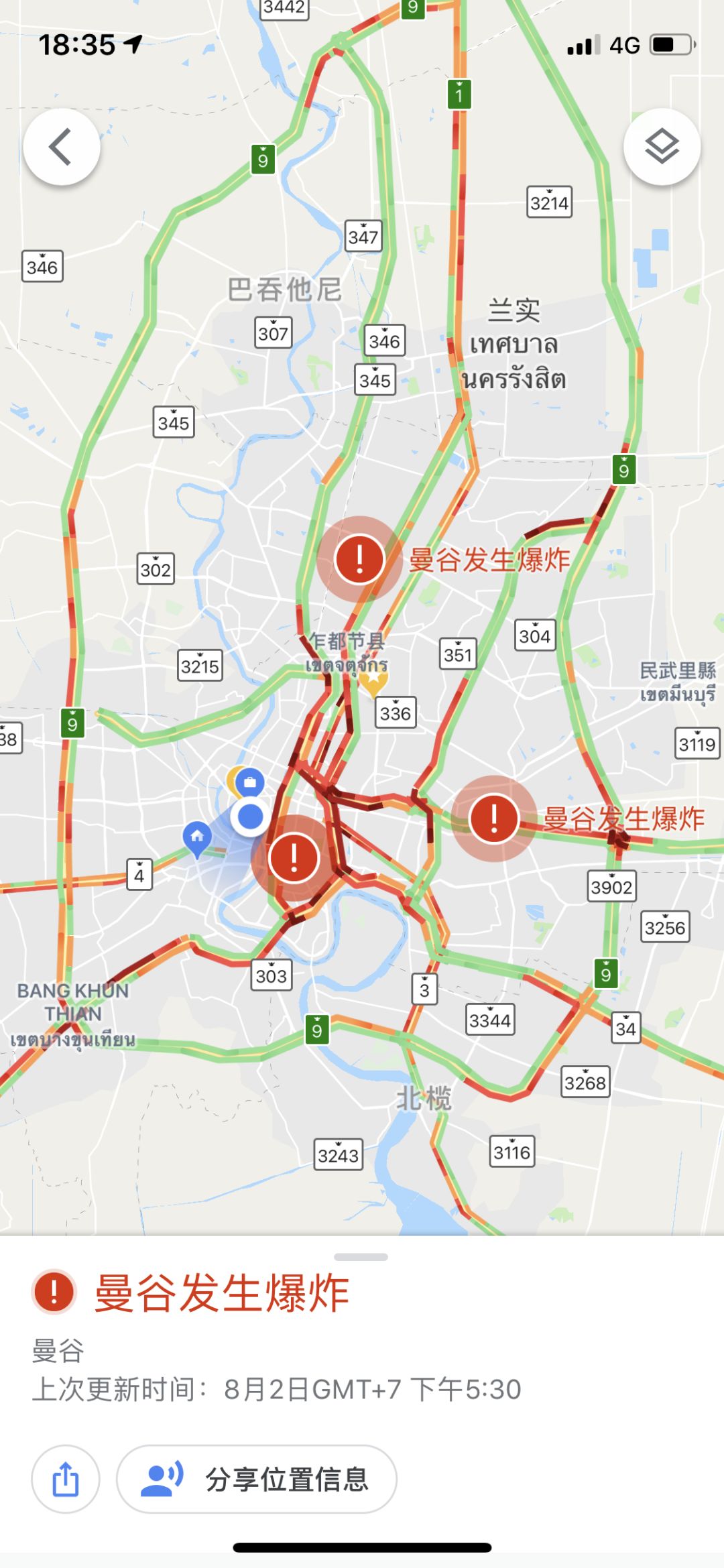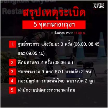 8月1日晚间至2日早上,曼谷多个地方发生爆炸,截止截稿时间,曼谷拉玛9路交岔口57/1、BTS Ch...
