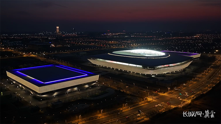 雄安体育中心夜景航拍。马宁 摄 中国星网、中国中化、中国华能三家央企总部正式入驻,北京援建的北海幼儿...